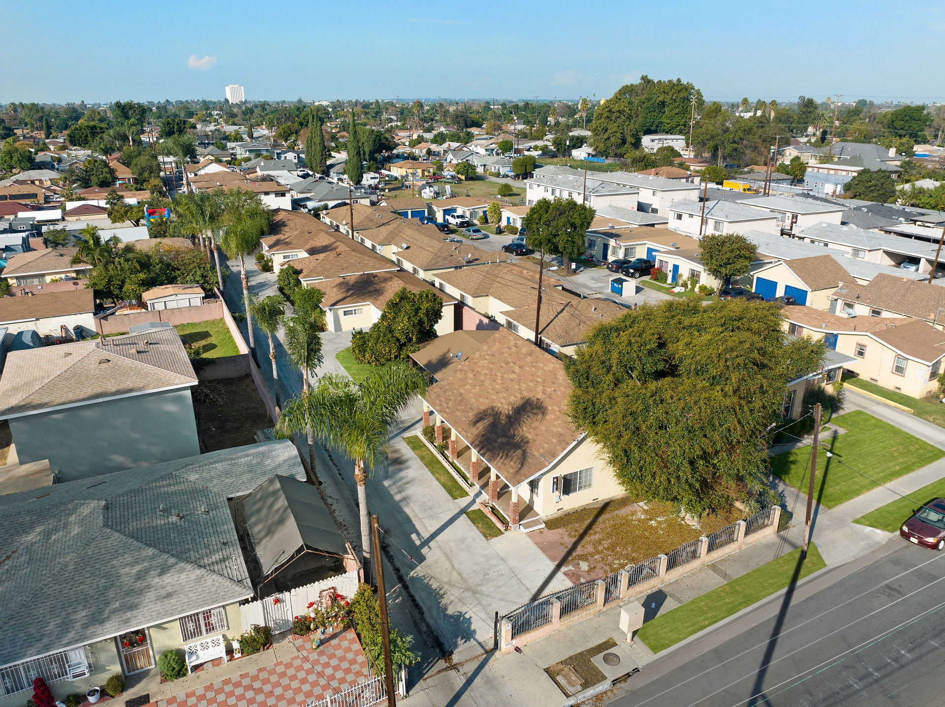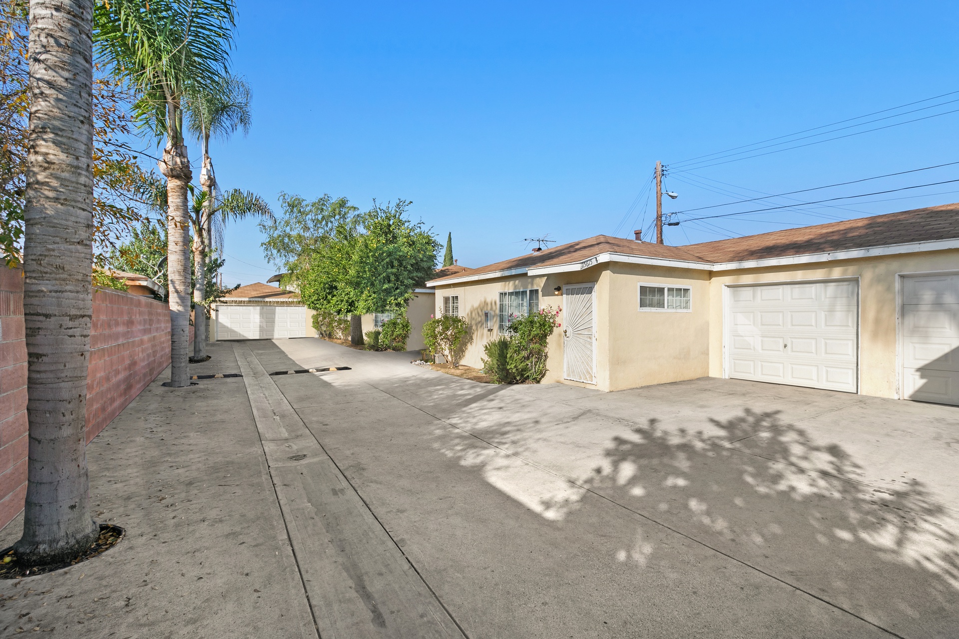 Situated on a 20,170 SF lot, 15615 S White Avenue features abundant on-site parking consisting of a mix of one-car garages, covered parking, and surface spaces. The scale of the lot and existing site layout may support the addition of one or two accessory dwelling units, subject to buyer verification of zoning, setbacks, and development feasibility.