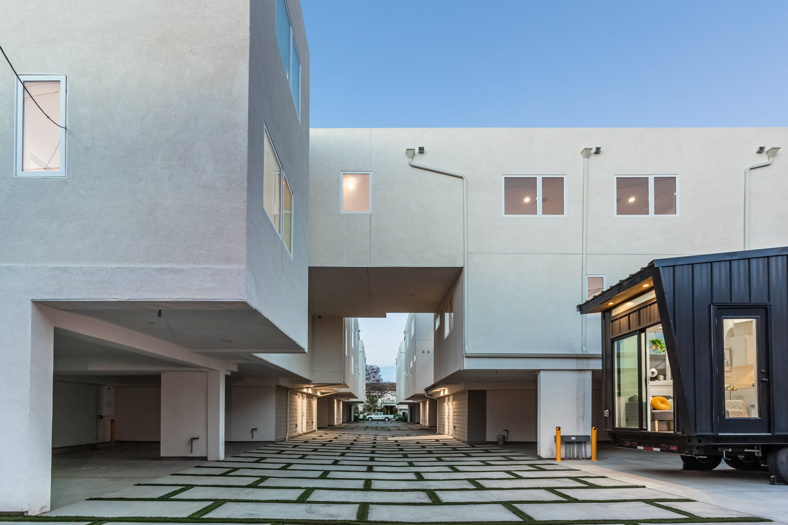 Each residence includes a private rooftop deck with open views toward the Hollywood Hills and surrounding cityscape. Rooftop living is integrated into the design rather than added as a secondary amenity, reinforcing the townhome positioning.
