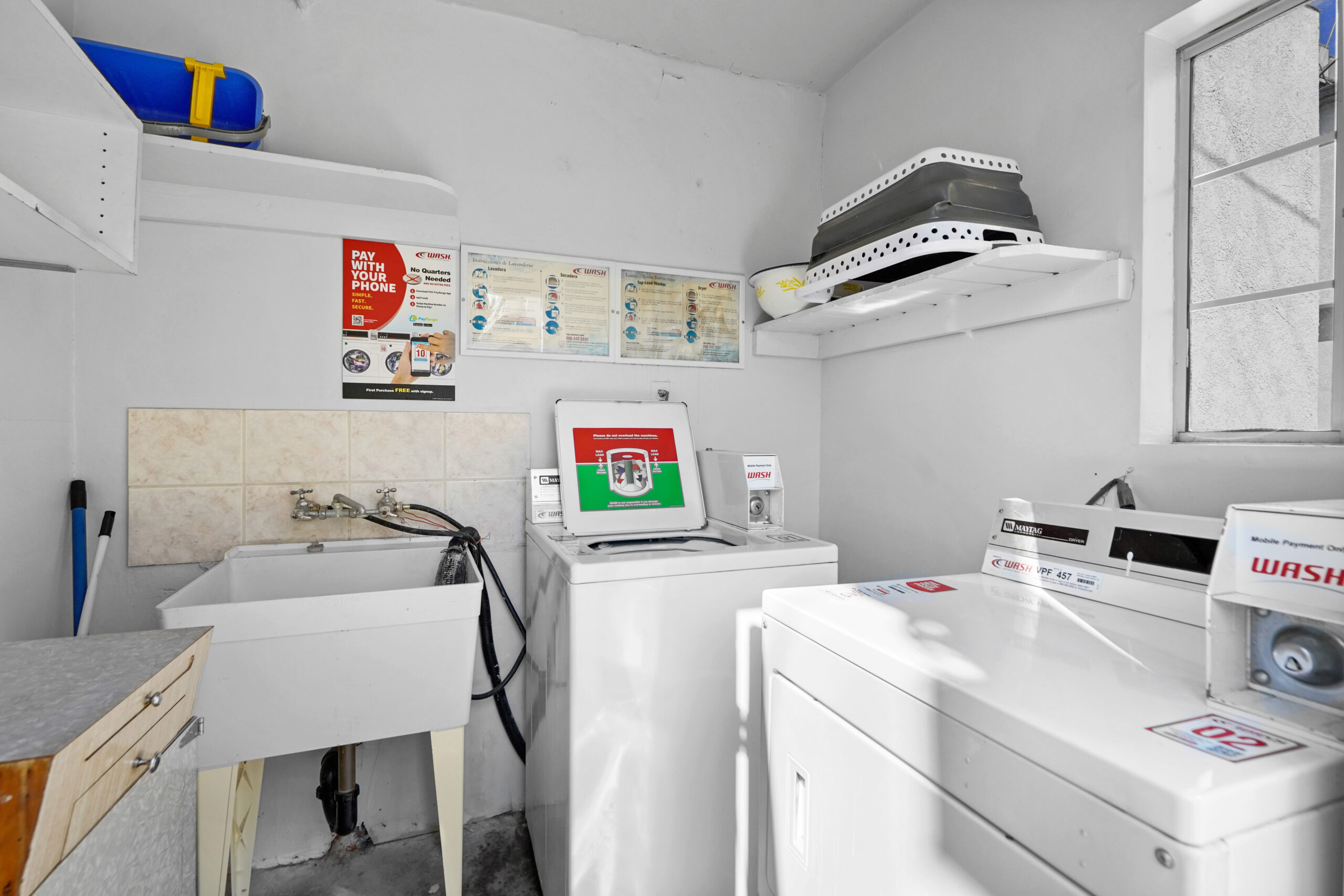 The property includes two two-car garages that generate additional income, a meaningful feature in a neighborhood where parking remains a consistent renter consideration. A community laundry room provides an additional income stream while maintaining operational simplicity.